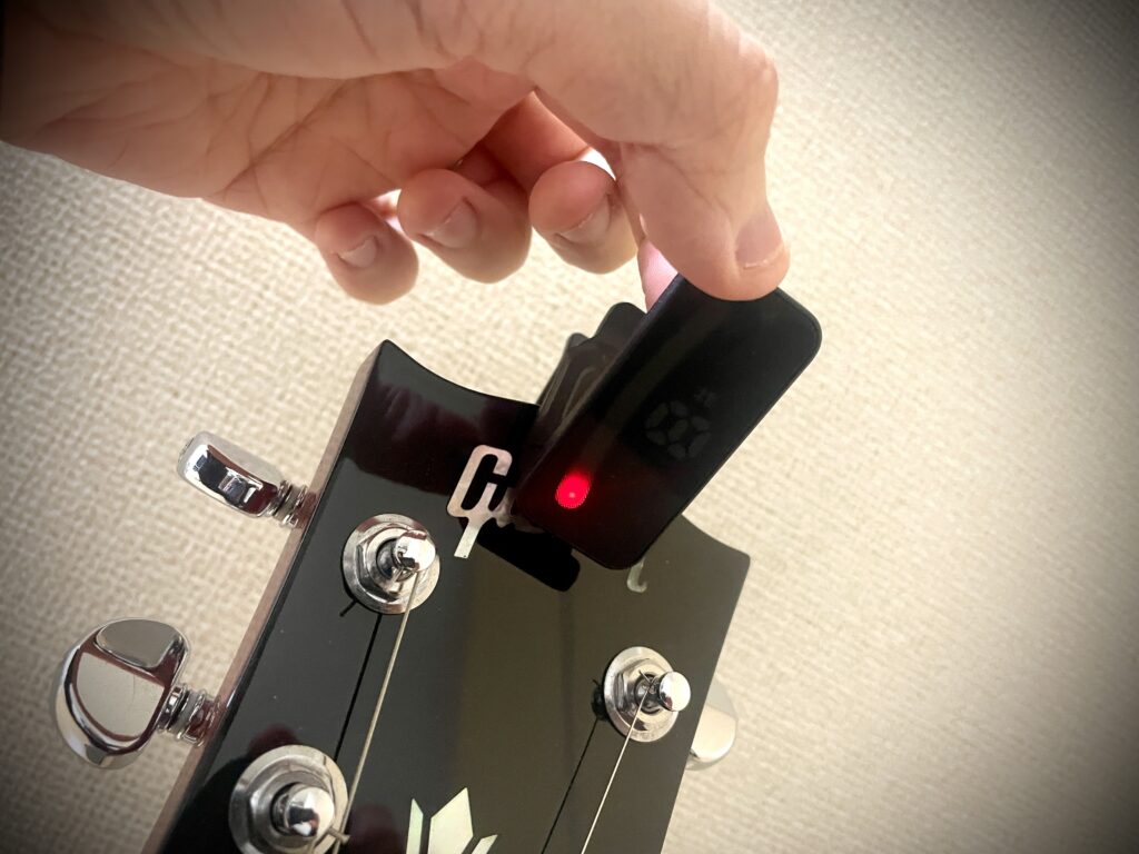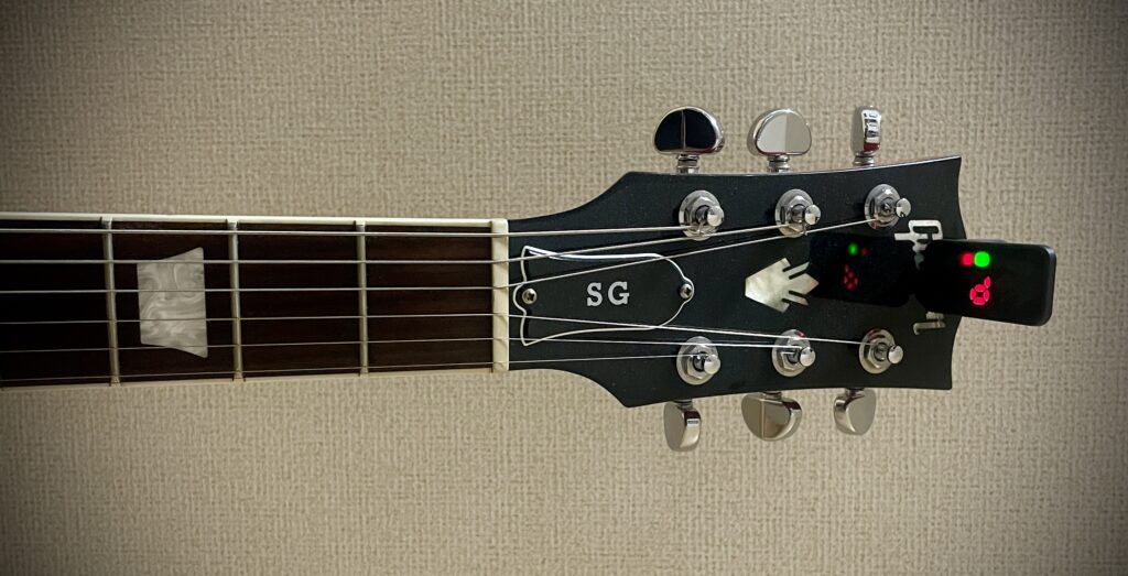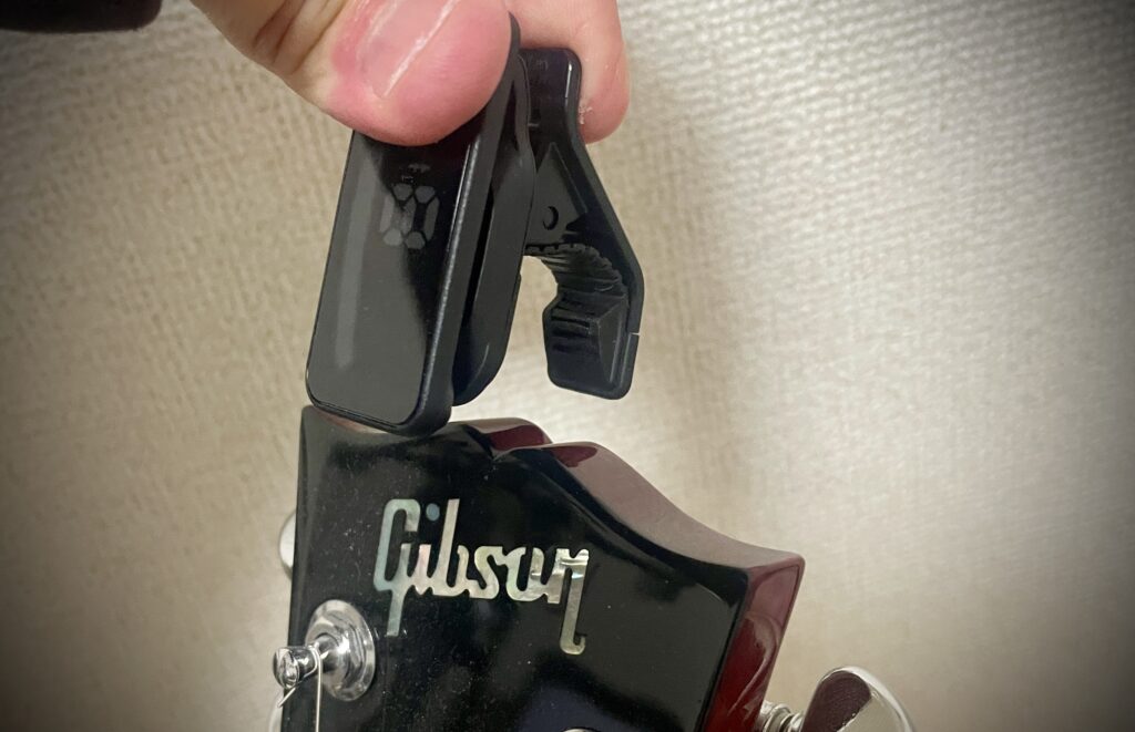 自宅での練習なら、クリップチューナーはギターのヘッドに付けっぱなしでOK。