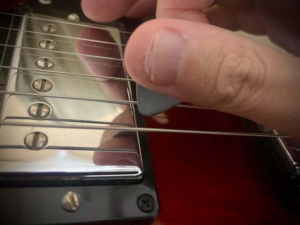 チューニングしたい弦の開放弦をピッキングします。