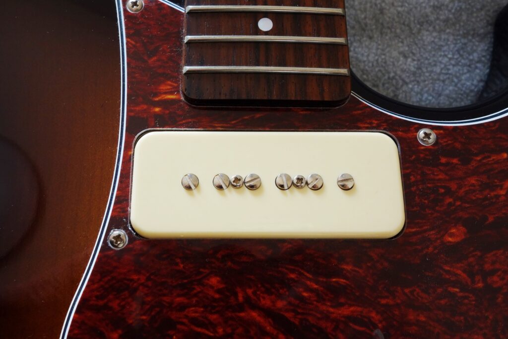 ハムバッカーサイズに収まる設計のP-90で、ノイズを抑えつつ扱いやすいサウンドを備えたモデルです。