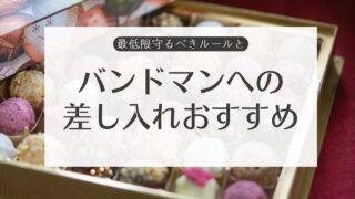ライフワーク バンドマンへの差し入れのおすすめと最低限守るべきルール ゴンタロウ君 バンドマンの友達に差し入れをあげたいけど何がいいかなぁ リョウスケコンノ 差し入れは非常に嬉しいけど、いくつかポイントがあるよ がんばれって応援の気持ちを込めた差し入れは、バンドマンからしたらすごく嬉しいです。 ただし、最低限... 2026.02.02 ライフワーク